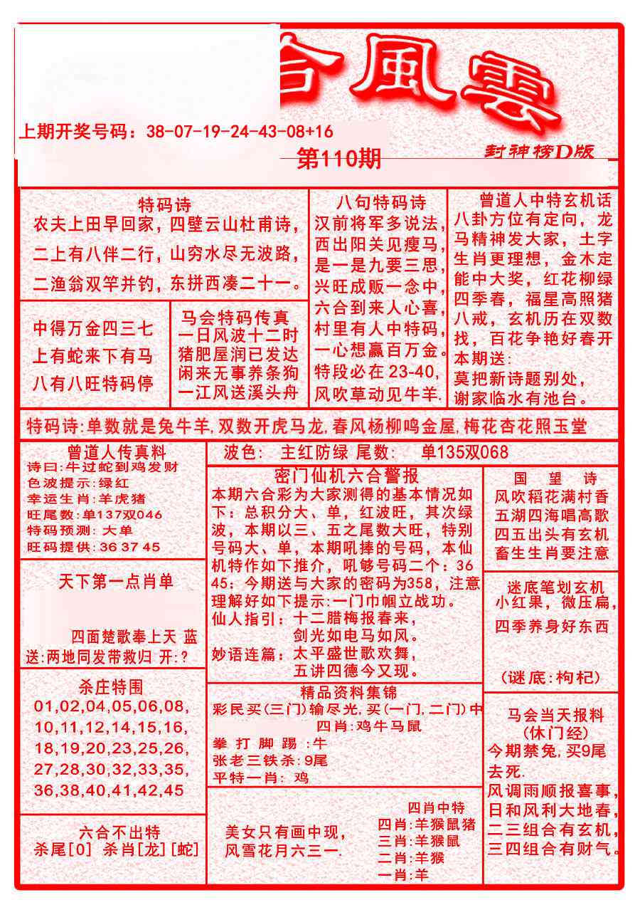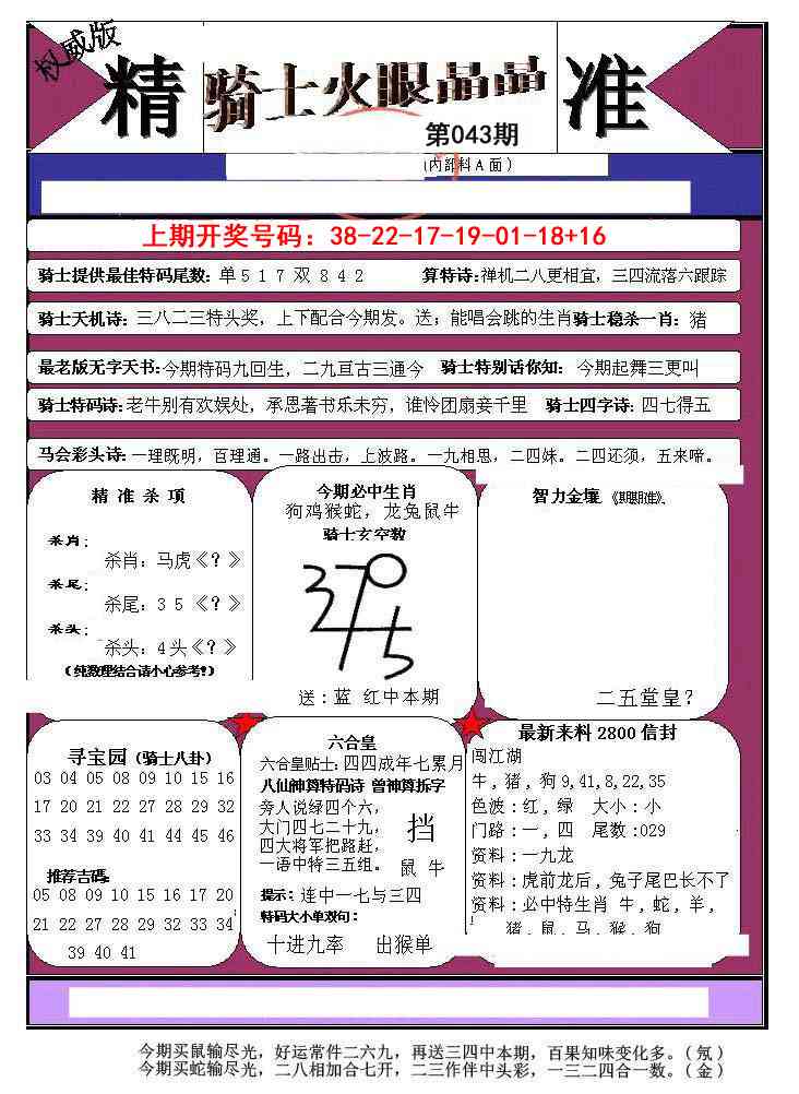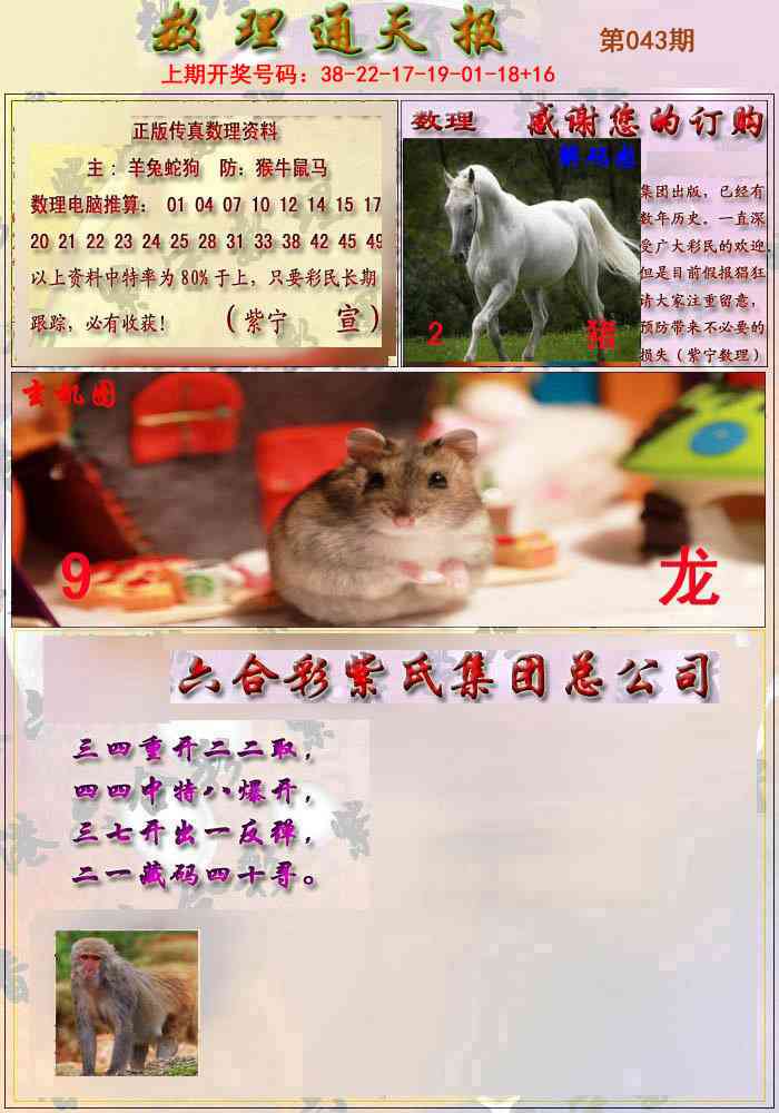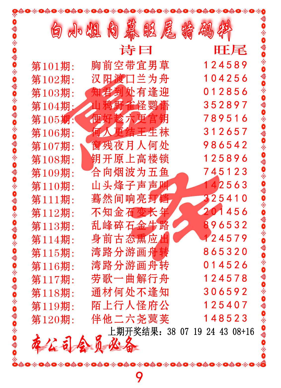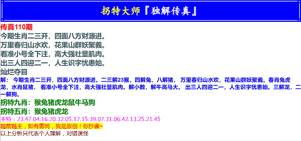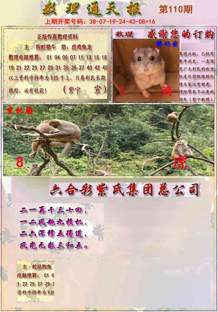 。所发布的资料属科学数理分析-开奖,走势,资料,图说,总结,均是精品资料。值得您长期跟踪。 |