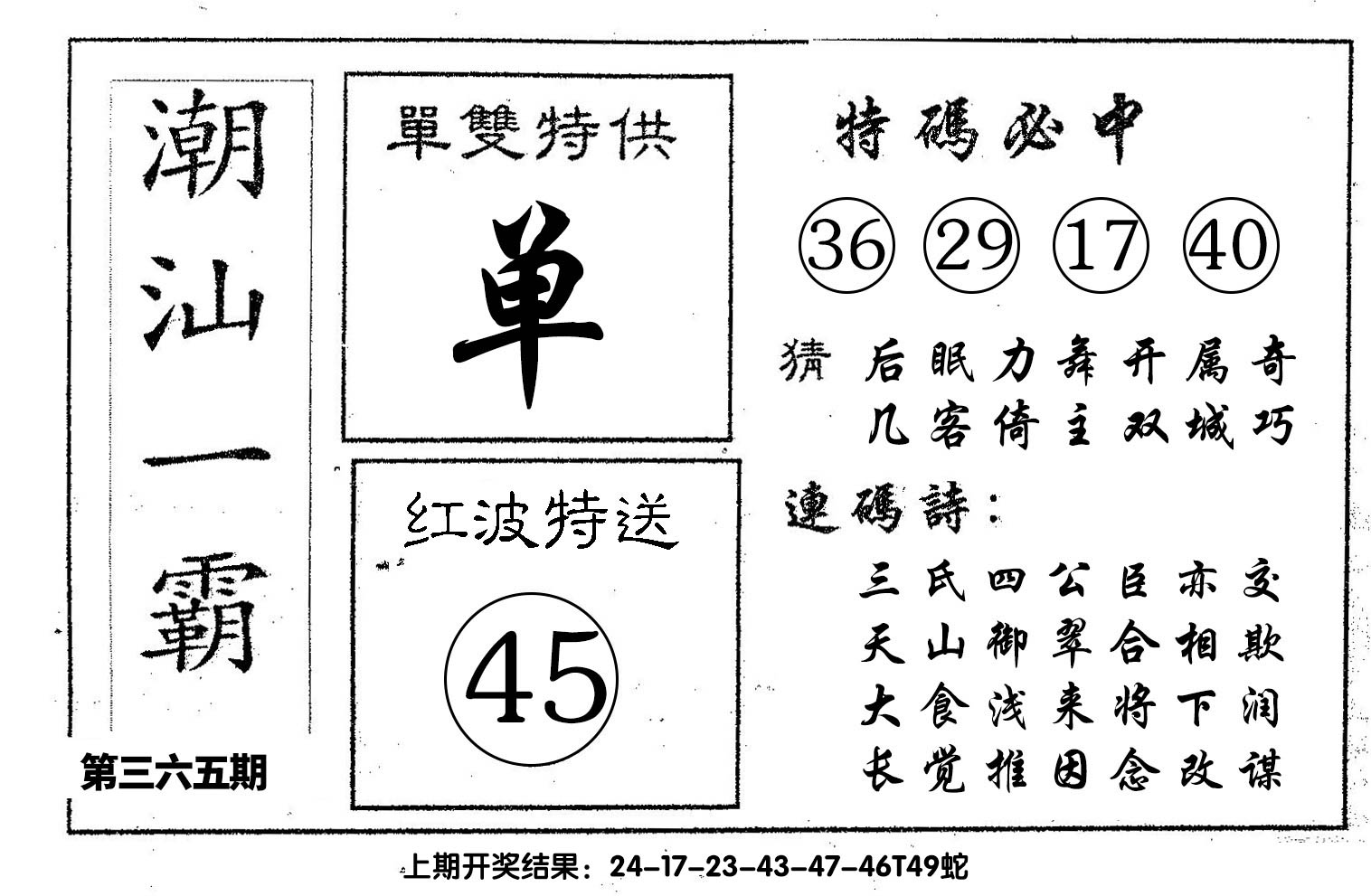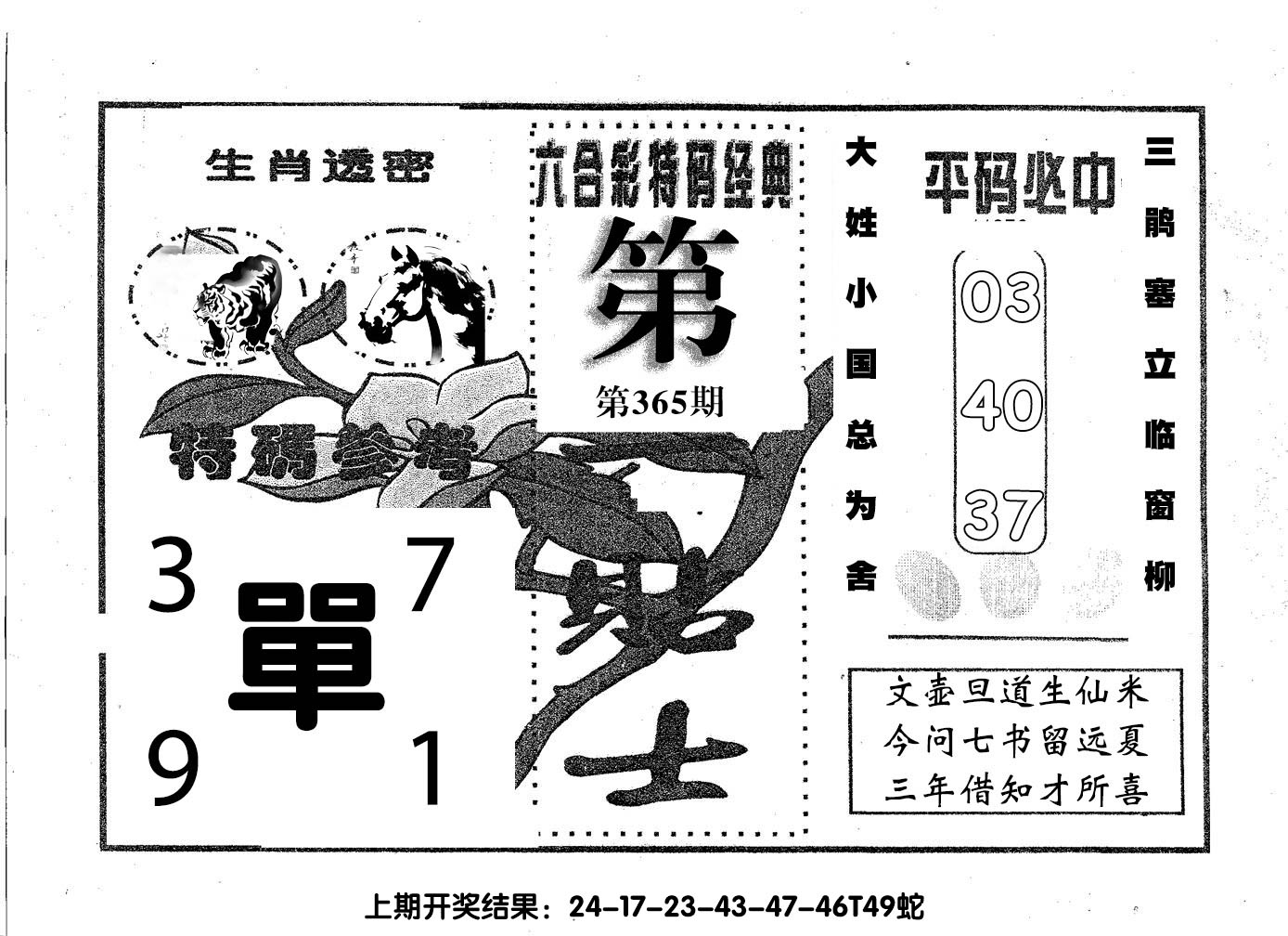 【六合堂图库】合数单双: