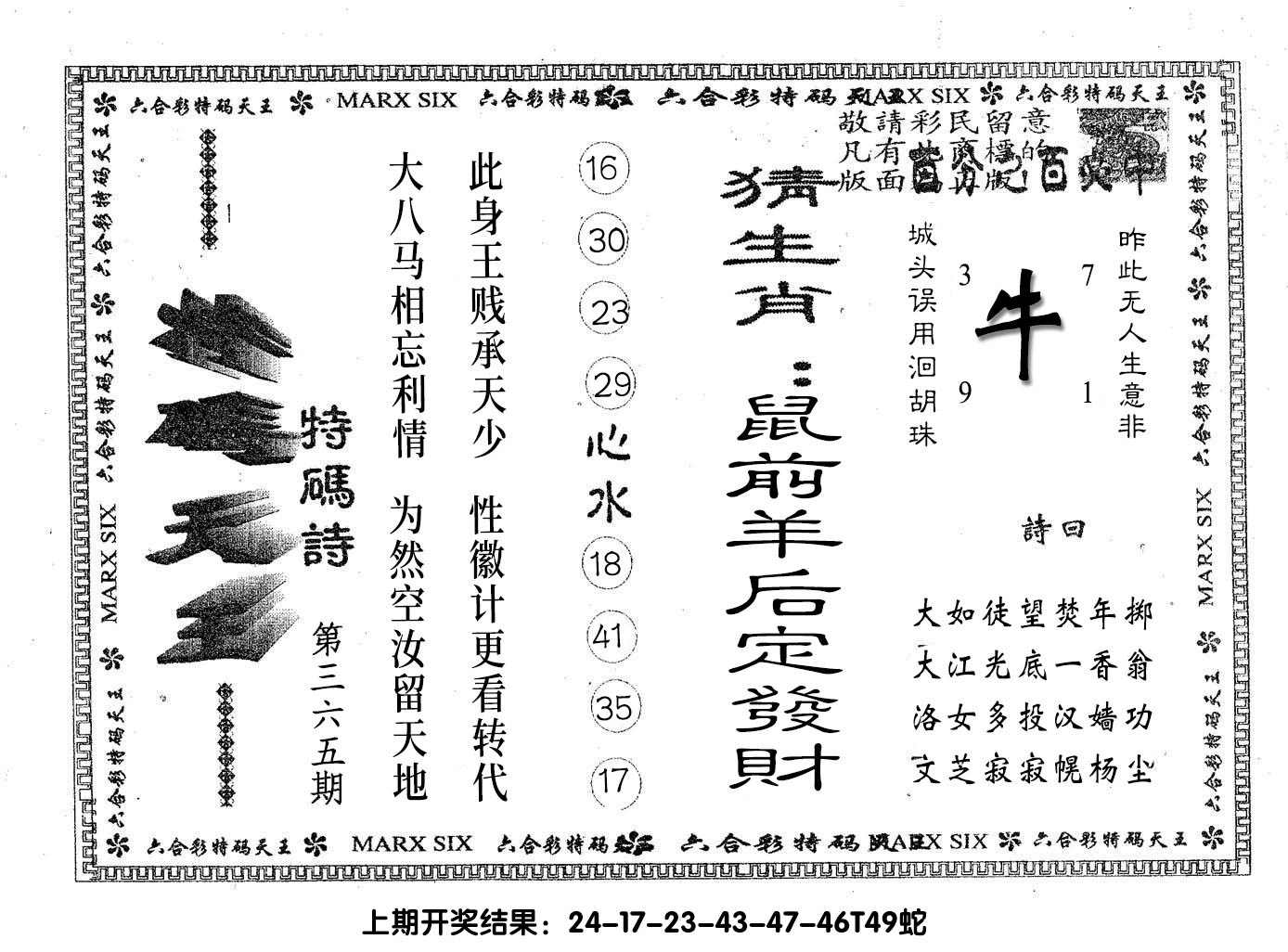 07,08,15,16,29,30,37,38,45,46 马 冲 鼠 羊 冲 牛 25 26 27 28 29 30 31 32 33 34 35 36