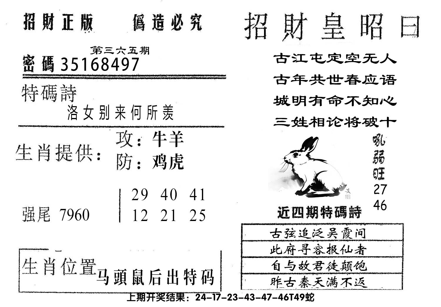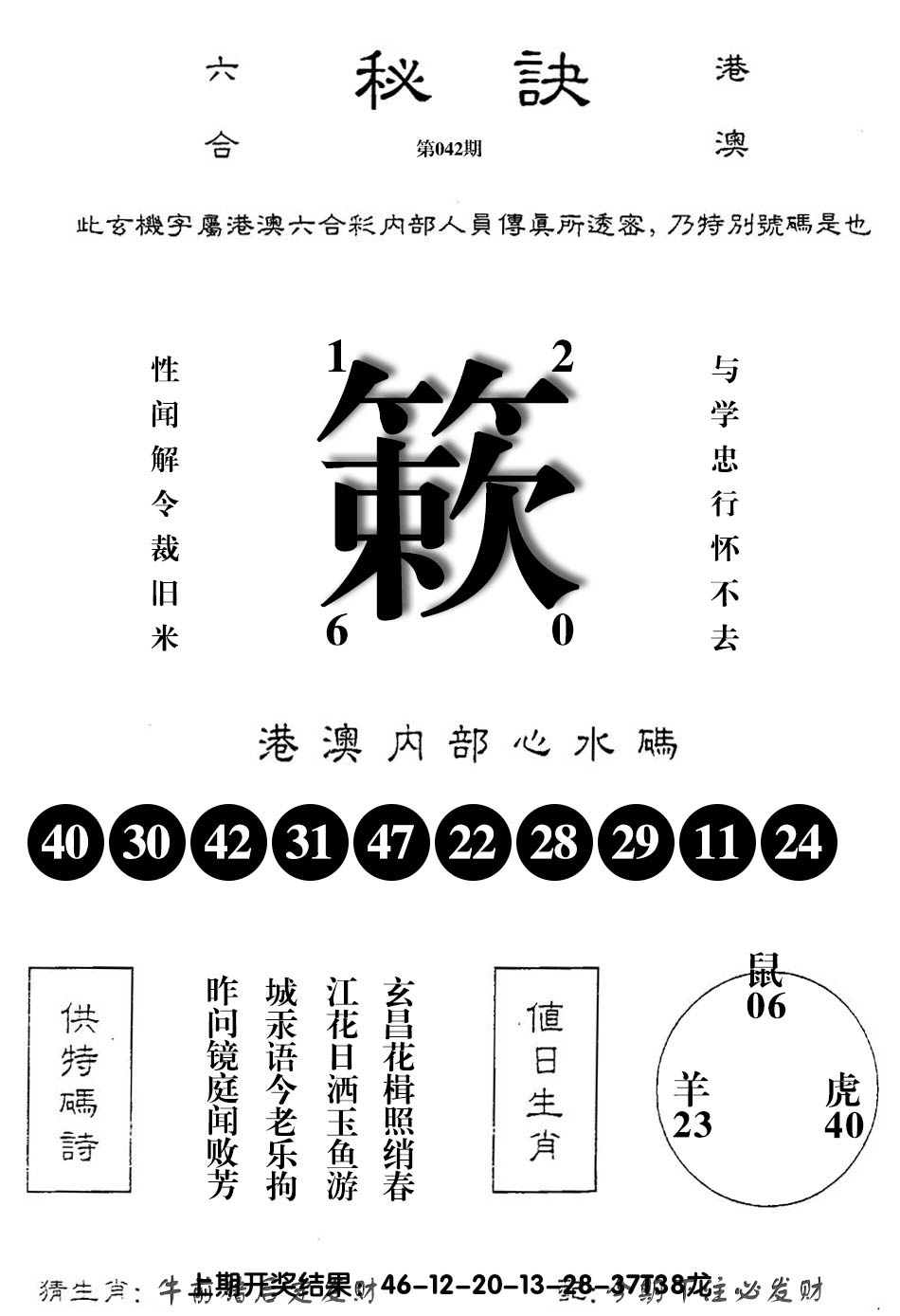 01,02,09,10,23,24,31,32,39,40 鼠 冲 马 牛 冲 羊