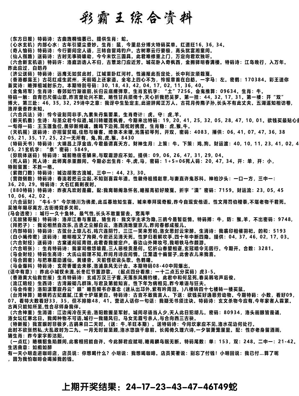 香港六合彩挂牌资料全篇