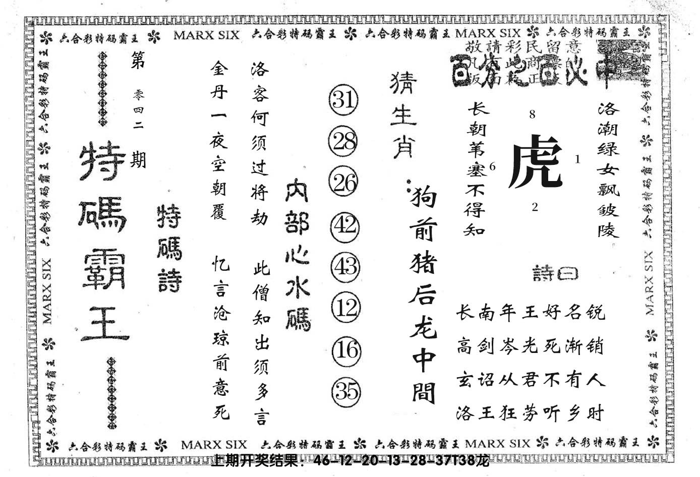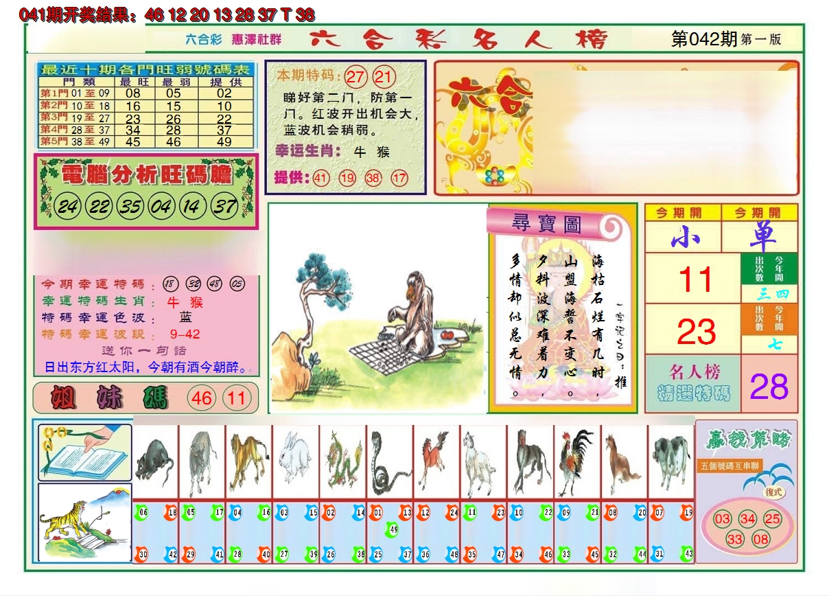 11,12,19,20,27,28,41,42,49 龙 冲 狗 蛇 冲 猪 13 14 15 16 17 18 19 20 21 22 23 24