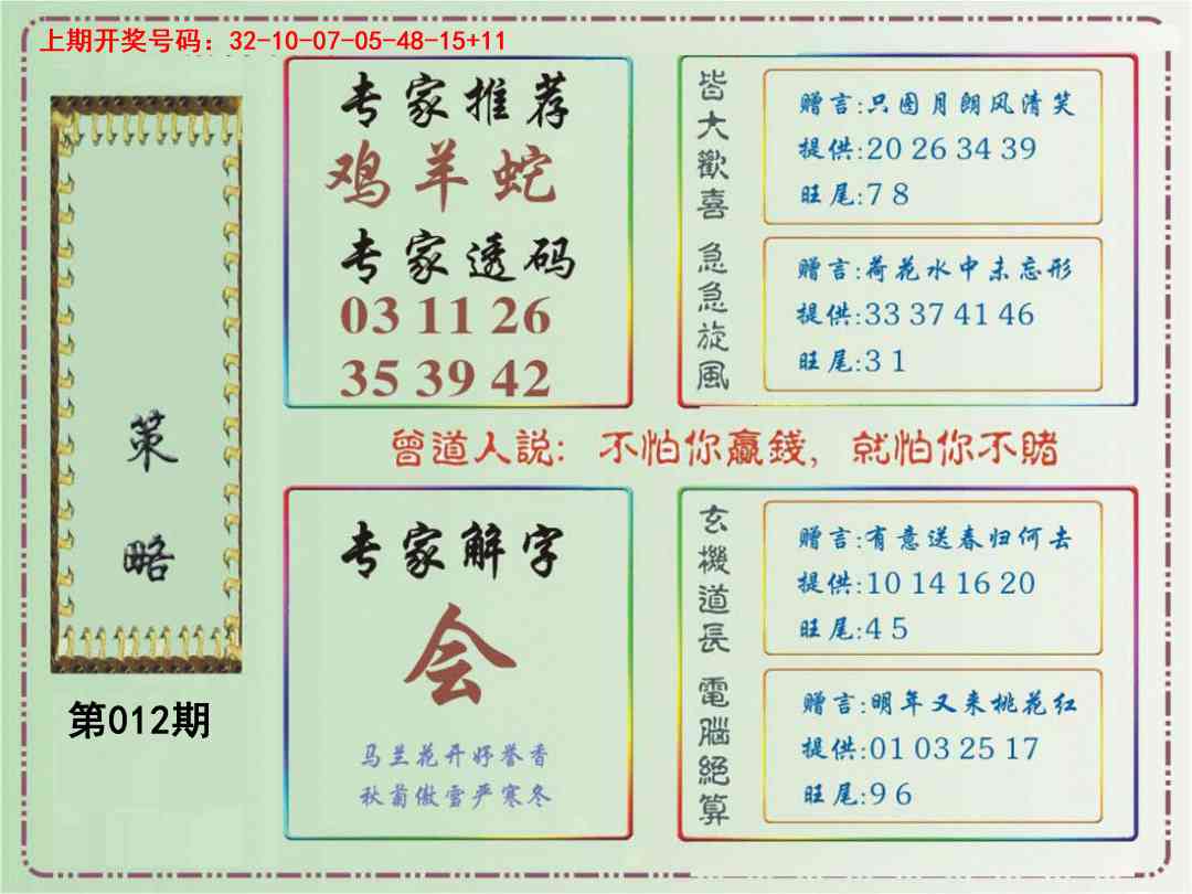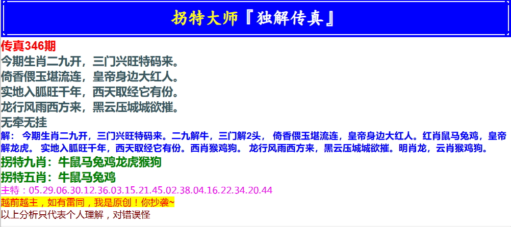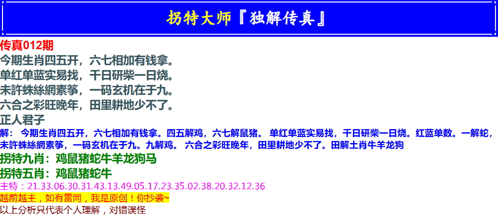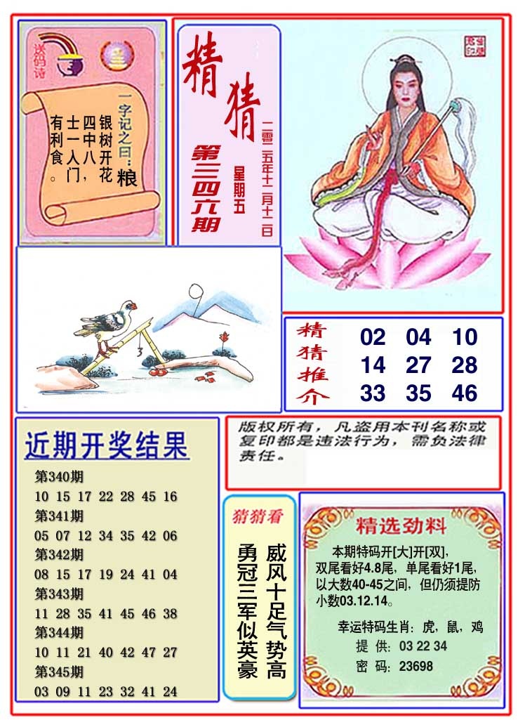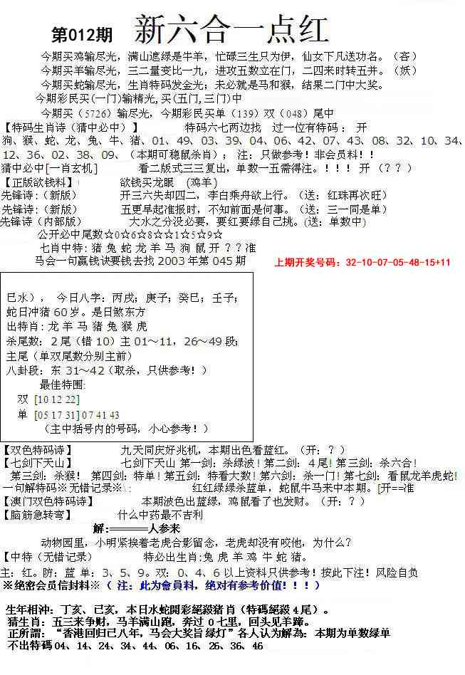 。所发布的资料属科学数理分析-开奖,走势,资料,图说,总结,均是精品资料。值得您长期跟踪。 |
