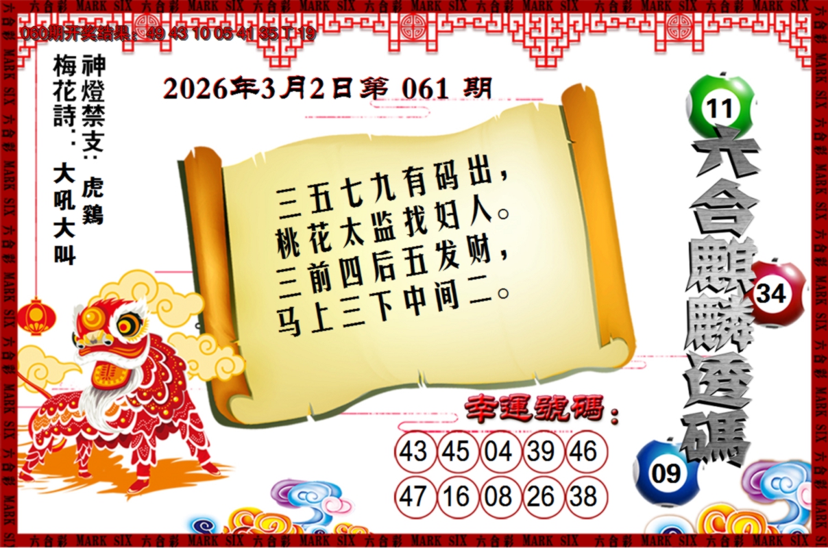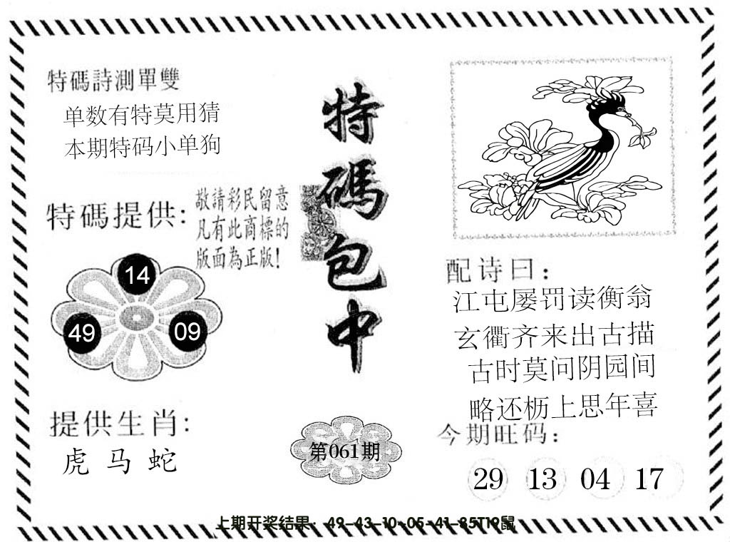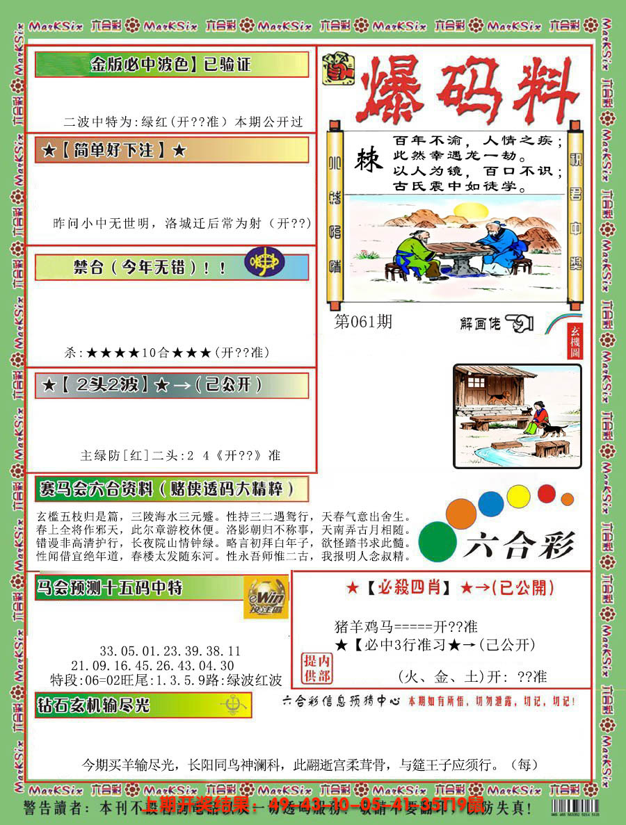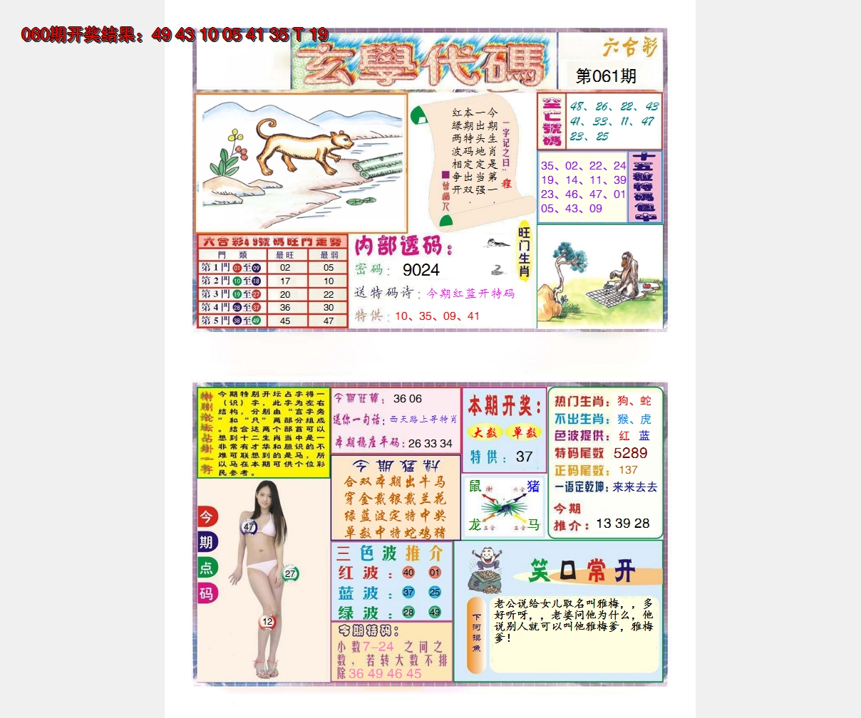 【六合堂图库】合数单双: