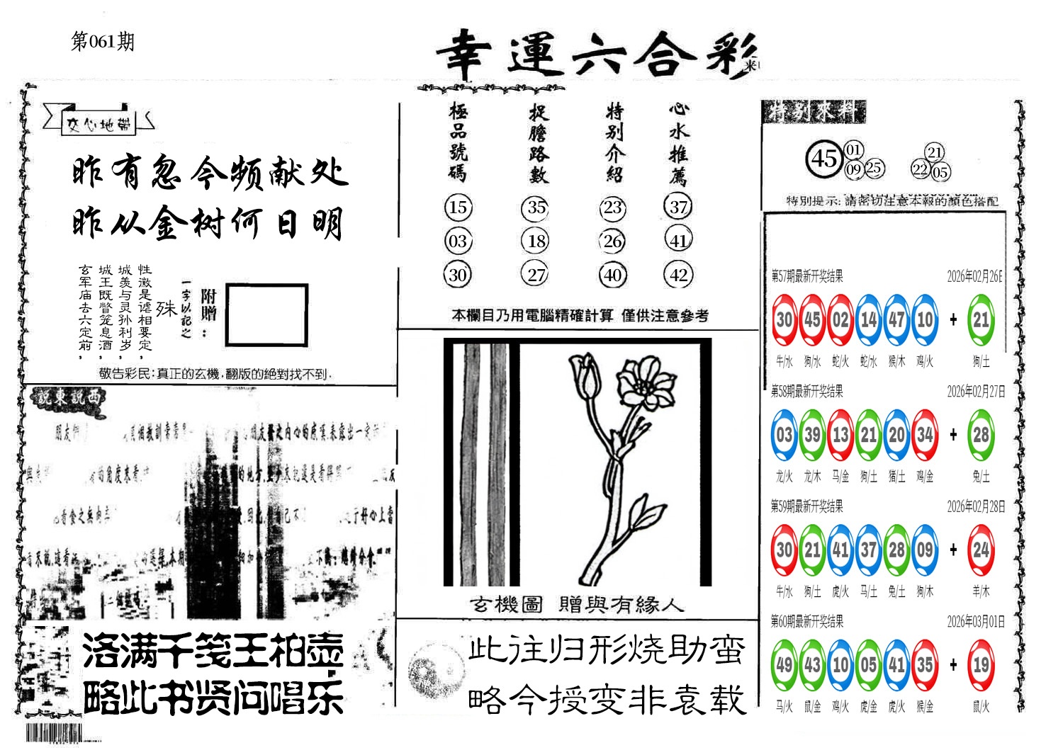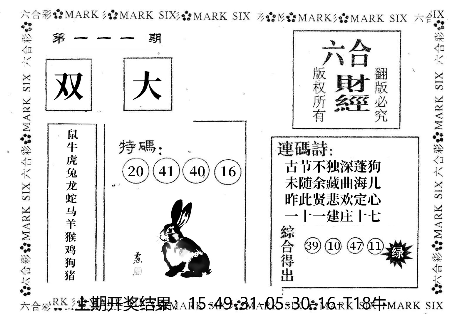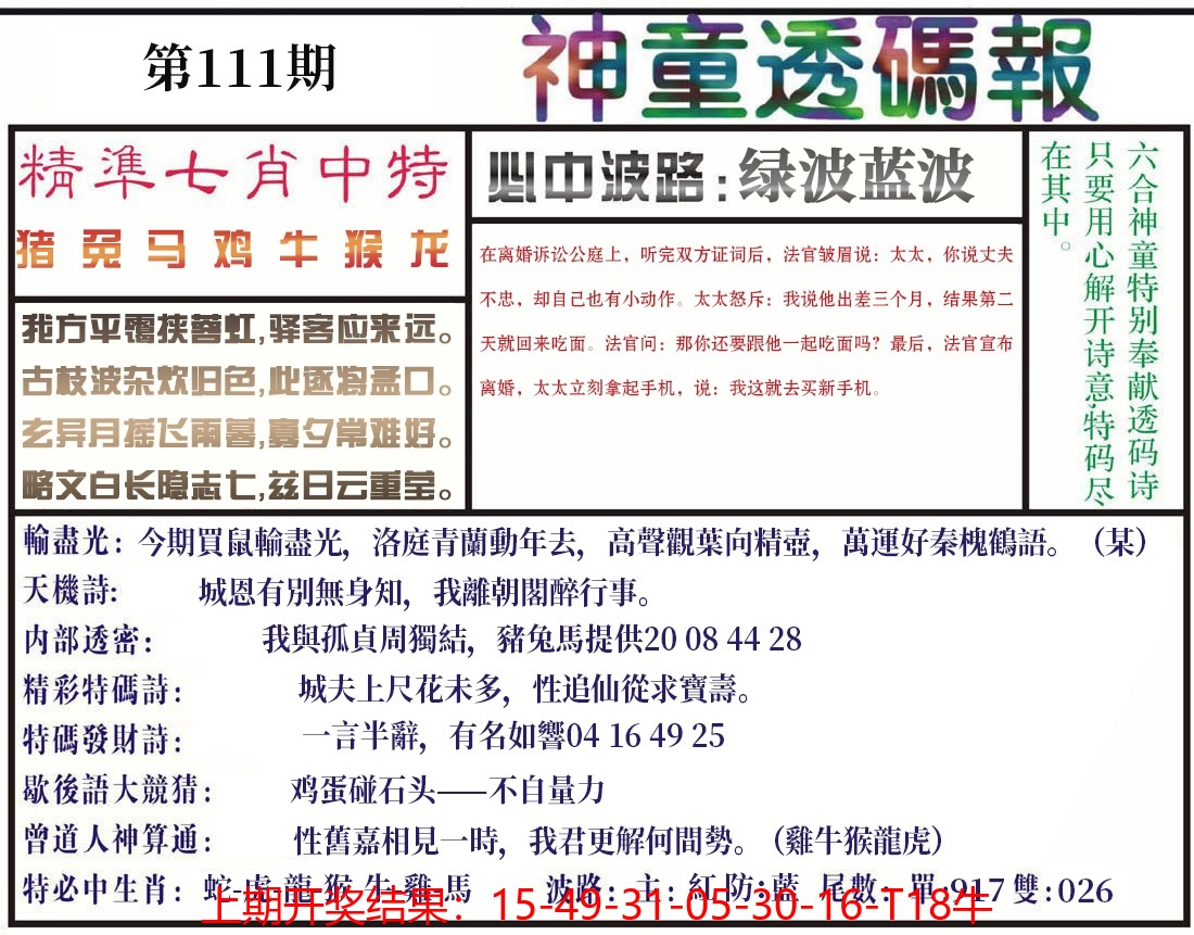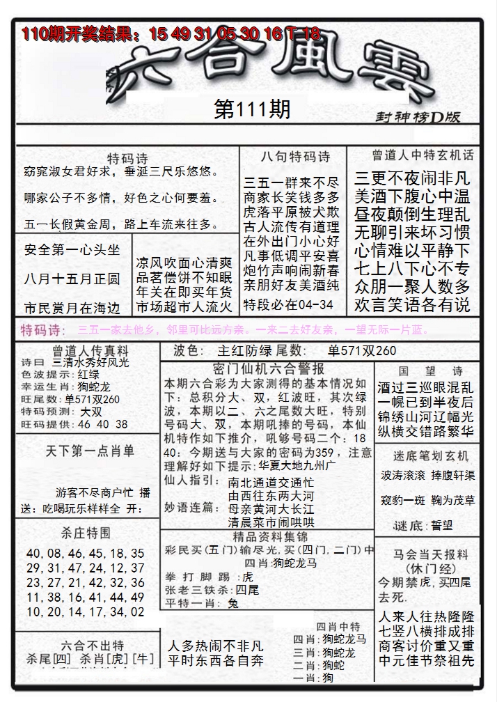 【六合堂图库】合数单双:
