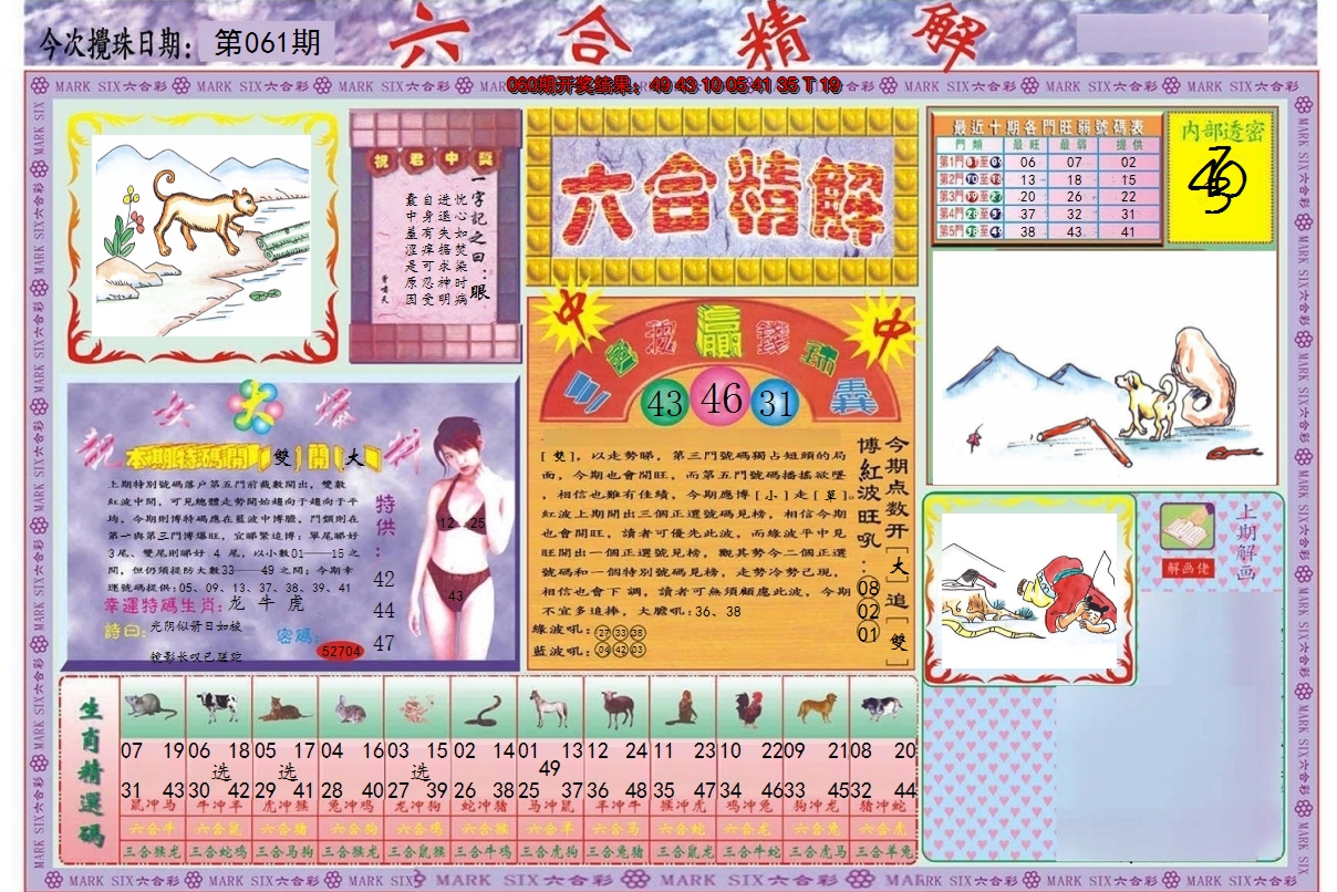 05,06,13,14,21,22,35,36,43,44 虎 冲 猴 兔 冲 鸡 01 02 03 04 05 06 07 08 09 10 11 12