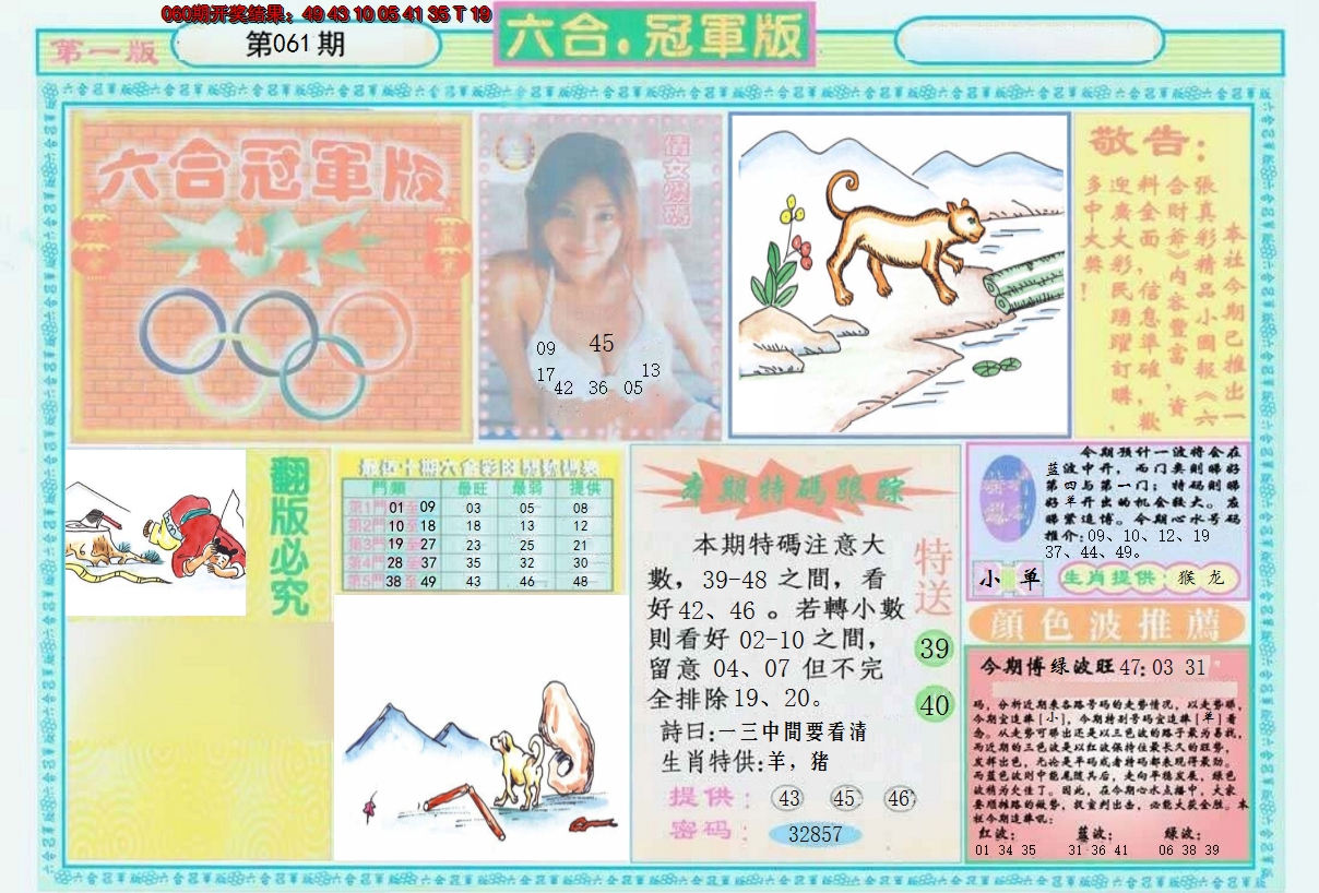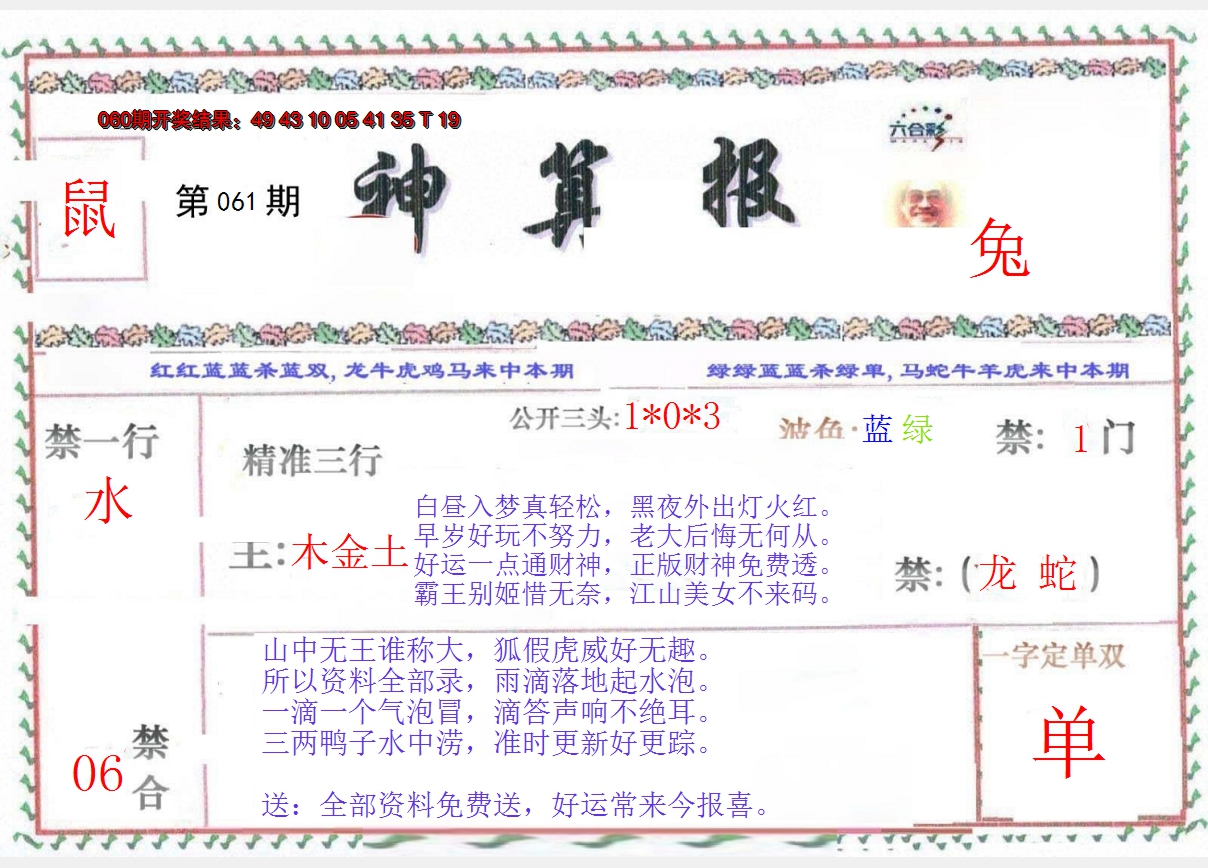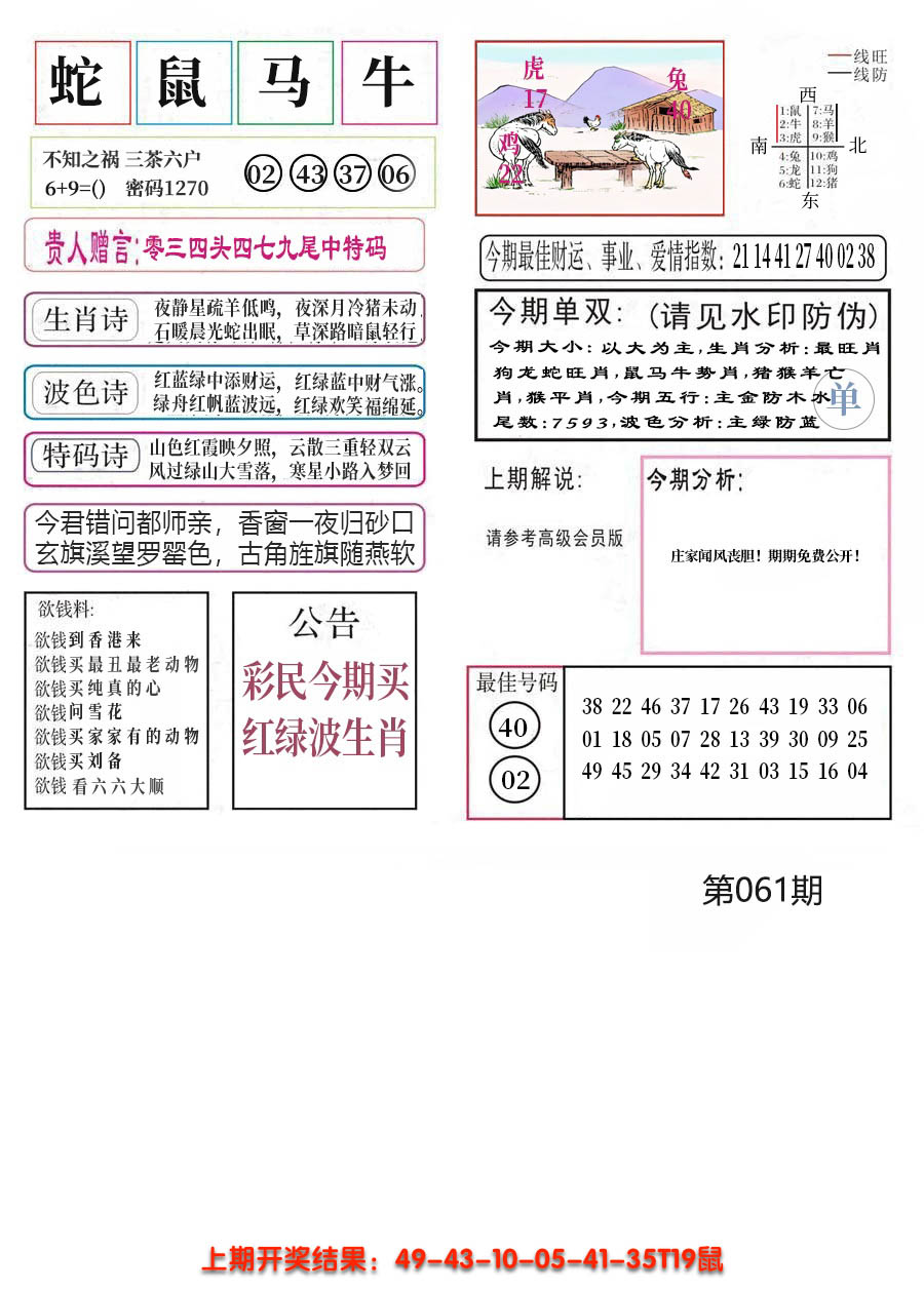 01,02,09,10,23,24,31,32,39,40 鼠 冲 马 牛 冲 羊