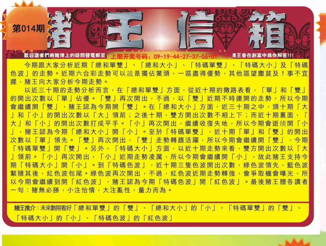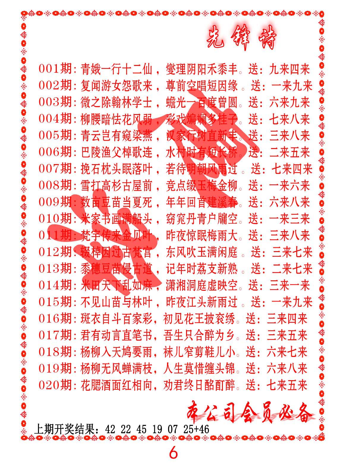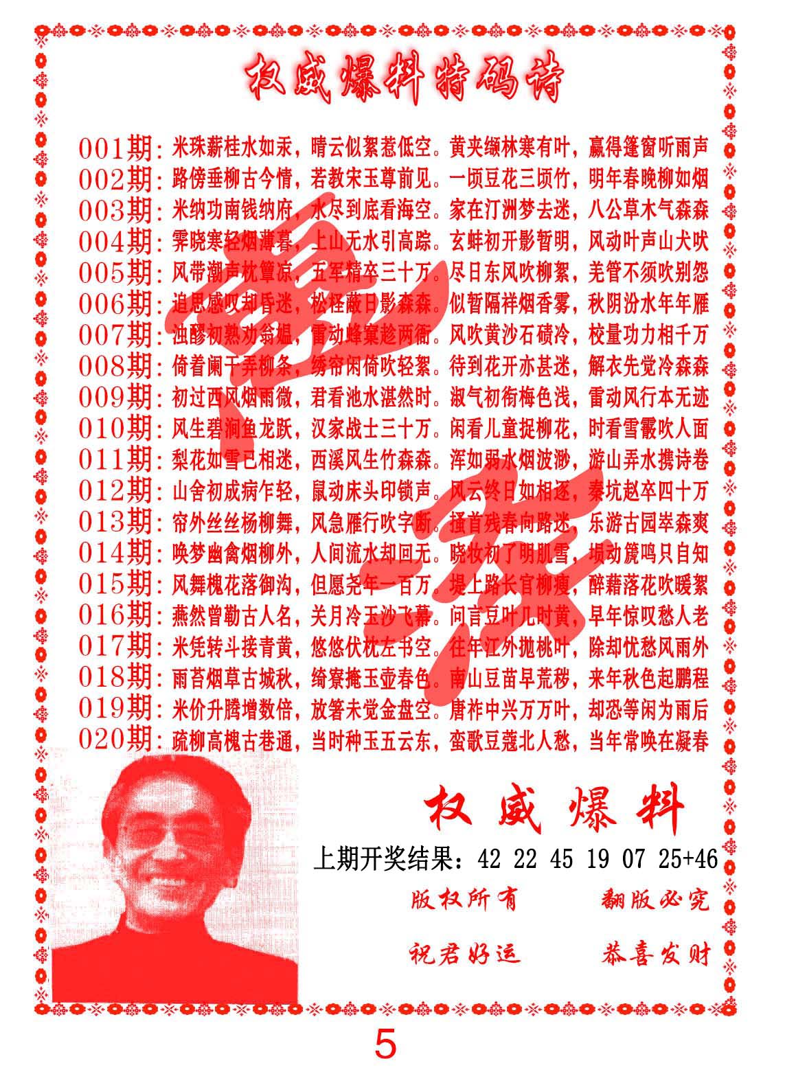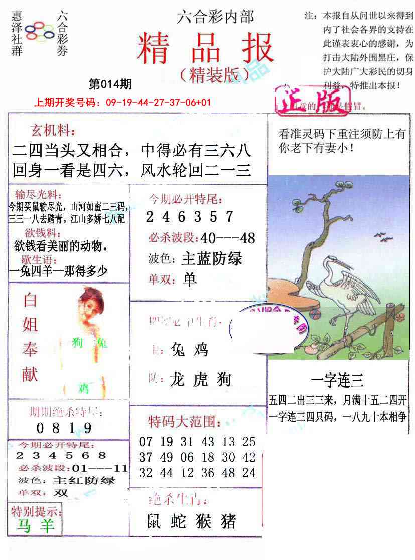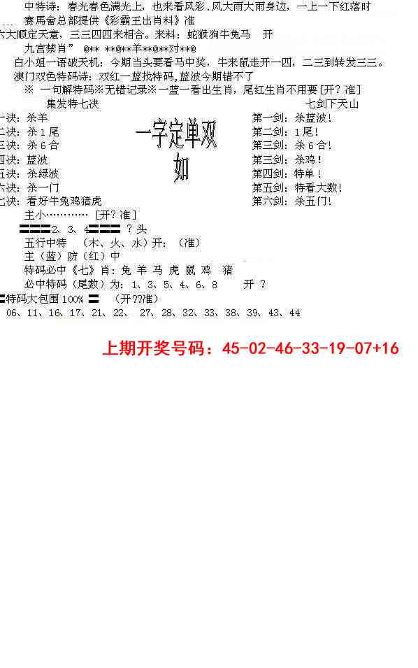 。所发布的资料属科学数理分析-开奖,走势,资料,图说,总结,均是精品资料。值得您长期跟踪。 |