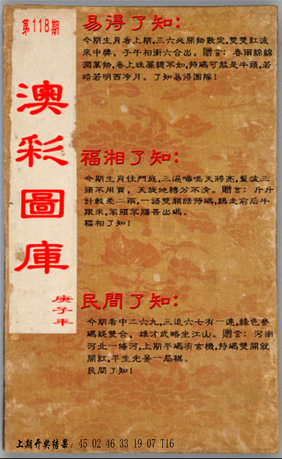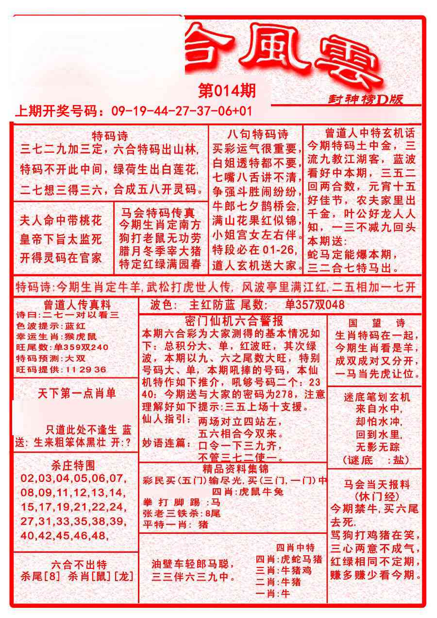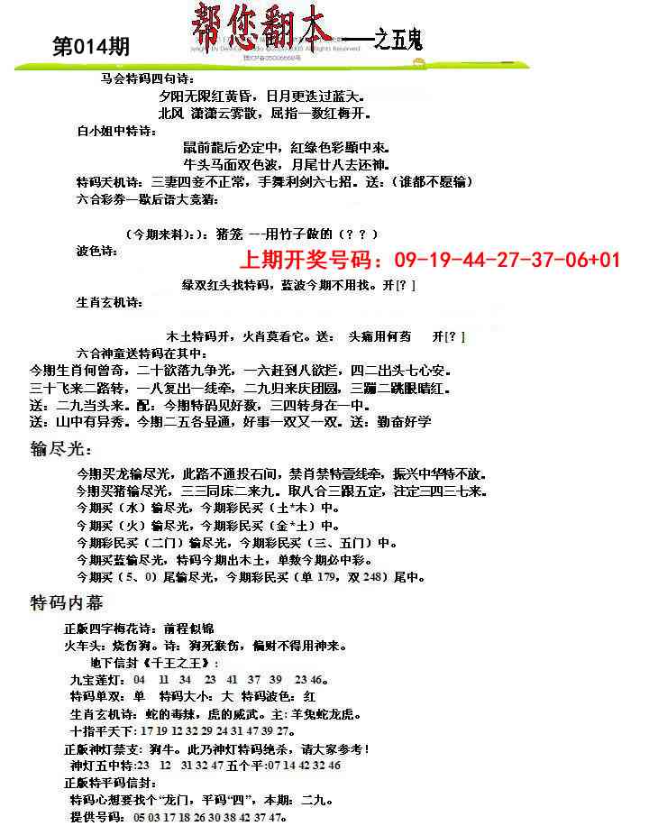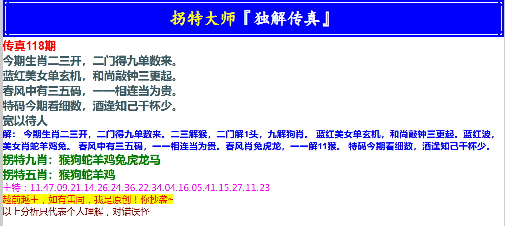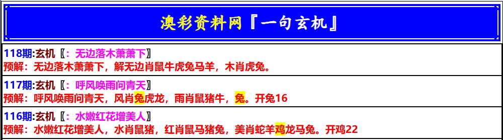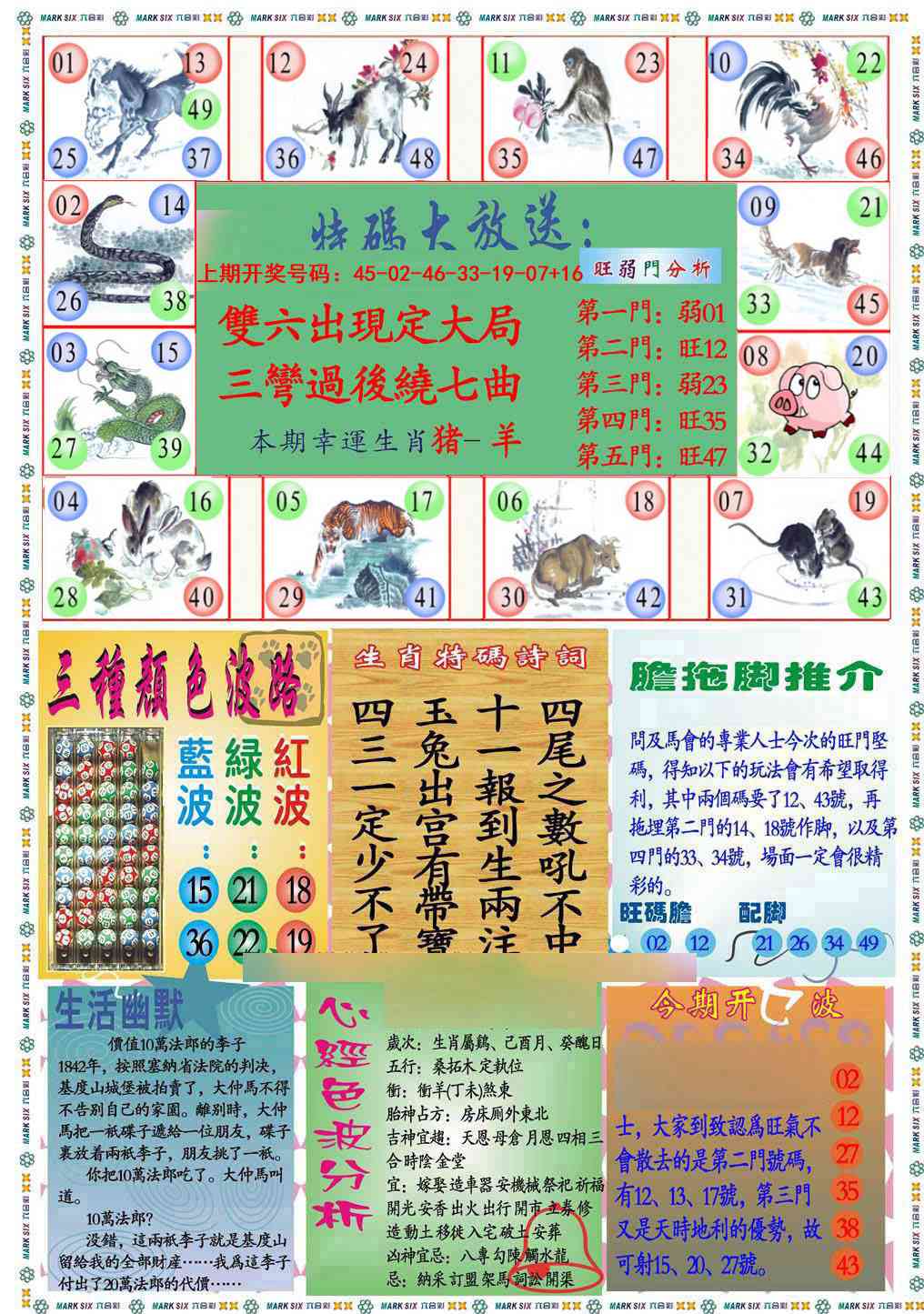 。所发布的资料属科学数理分析-开奖,走势,资料,图说,总结,均是精品资料。值得您长期跟踪。 |